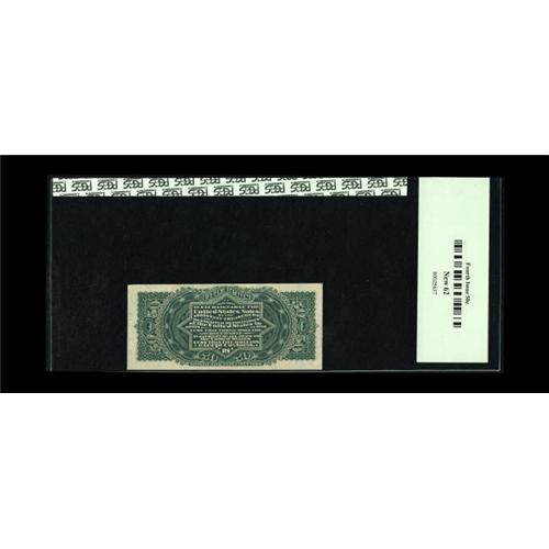 48B. CURRENCY – Notes sold referencing a third-party grading service are sold "as is" without any express or implied warranty, except for a guarantee by Auctioneer that they are genuine. Grading, condition or other attributes of any lot may have a material effect on its value, and the opinion of others, including independent grading services such as PCGS Currency, PMG, and CGA may differ with that of Auctioneer. Auctioneer shall not be bound by any prior or subsequent opinion, determination, or certification by any independent grading service. The grades assigned by any grading service to any note offered in any Heritage Currency Auctions of America sale represent the opinion of that grading service only,and may differ in material respects from the grade assigned to the same note in previous sales by HCAA or other auction companies, or from the grade that would be assigned by any other grading service. HCAA is unable to view any third party graded item outside of the holder, and specifically disclaims any liability of any kind to bidders who bid on third party graded items for mistakes of commission or omission by any grading service. Bidders are hereby notified that currency grading standards have changed in the past and are subject to change in the future, and that the only remedy bidder has with respect to third party graded notes is to deal directly with the grading service certifying the item. Bidders are also advised that Auctioneer makes no representation or guarantee that any item obtained by Bidder will be assigned any particular grade by any particular grading service, and as noted herein, Bidder specifically waives any claim to right of return of any item because of the opinion, determination, or certification, or lack thereof, by any independent grading service. Certain warranties may be available from the grading services and the Bidder is referred to them for further details: Paper Money Guaranty (PMG), PO Box 4711, Sarasota FL 34230; PCGS Currency, PO Box 9458, Newport Beach, CA 92658; Currency Grading & Authentication (CGA), PO Box 418, Three Bridges, NJ 08887.
