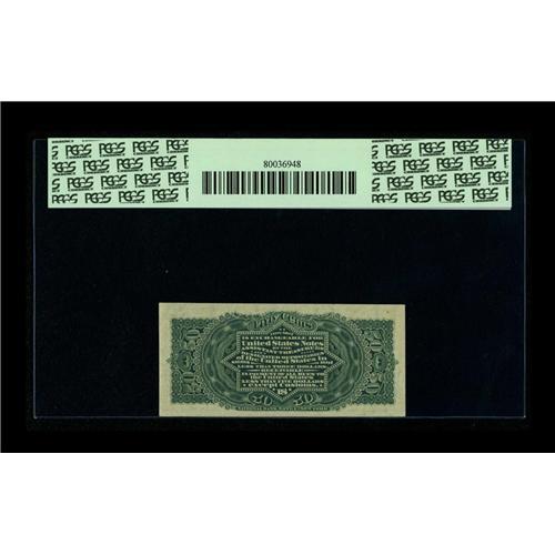 <B>Fr. 1374 50¢ Fourth Issue Lincoln PCGS Very Choice New 64.</B></I> This Lincoln has the margins of a Superb Gem as well as all the eye appeal. Once holdered, it's often difficult to figure out why a note was graded as it was. This one looks several points better than its assigned grade, but our experience with PCGS is that they tend to be quite accurate. And although we can't find it, it is likely some minor flaw that holds this 67-appearing note to the 64 grade.<BR><BR><b>Shipping:</b> Coin/Currency (<a target="_blank" href="http://www.heritageauctions.com/common/shipping.php">view shipping information</a>)