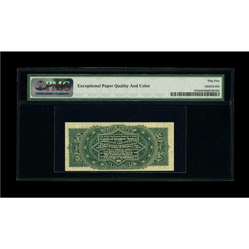 <B>Fr. 1374 50c Fourth Issue Lincoln PMG About Uncirculated 55 EPQ.</B></I> "Exceptional Paper Quality and Color" has been bestowed upon this Lincoln note that is hindered by a typical tight margin. What is special about this note is that it appears to have one of the nearest brown seals that we can remember having seen in a long time. Although delisted long ago as a separate variety these "brown seal" notes have always realized well in excess of what they otherwise would and it is a very difficult subvariety to locate for this Lincoln type.<BR><I>From The Collection of Daniel Weissman</B></I><BR><BR><b>Shipping:</b> Coin/Currency (<a target="_blank" href="http://www.heritageauctions.com/common/shipping.php">view shipping information</a>)