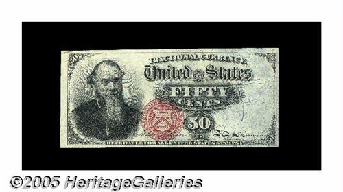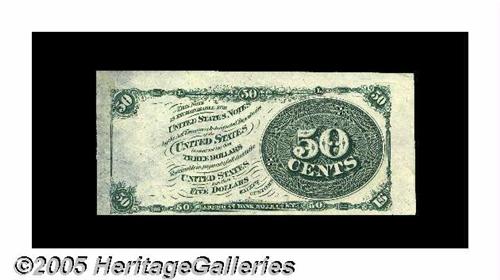 <B>Fr. 1376 50¢ Fourth Issue Stanton Choice New.</B></I> An otherwise handsome Stanton, with a little minor glue staining at the left end on the back.