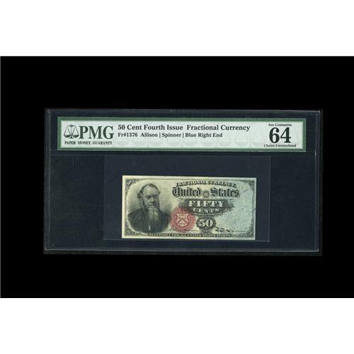 <B>Fr. 1376 50c Fourth Issue Stanton PMG Choice Uncirculated 64 EPQ.</B></I> This brightly colored Stanton would certainly be Superb if it were not for the tight right margin.