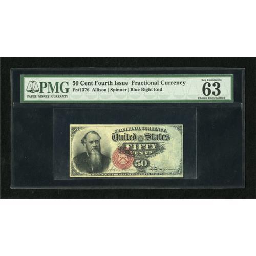<B>Fr. 1376 50c Fourth Issue Stanton PMG Choice Uncirculated 63 EPQ.</B></I> Original embossing is easily seen through the holder on this delightful Stanton note.<BR><BR><b>Shipping:</b> Coins & Currency (<a target="_blank" href="http://www.heritageauctions.com/common/shipping.php">view shipping information</a>)