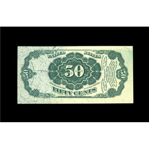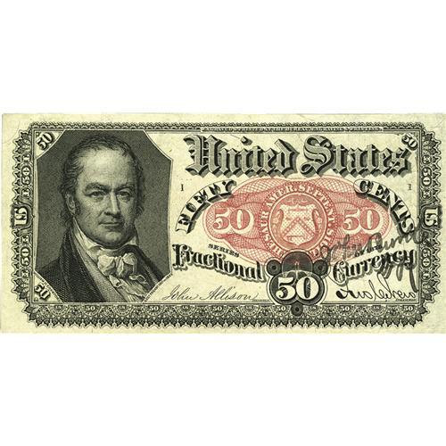 <B>Fr. 1381 Milton 5R50.1g 50¢ Fifth Issue Courtesy Autograph Gem New.</B></I> John Burke's bold signature appears above that of the engraved John New. The host note is a perfect Gem.