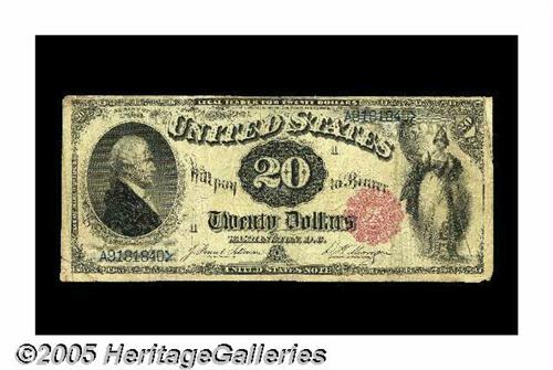 <B>Fr. 141 $20 1880 Legal Tender Fine.</B></I> An affordable and still quite presentable note honoring Alexander Hamilton, the architect of the early financial structure of the federal government.