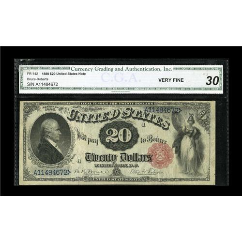Fr. 142 $20 1880 Legal Tender CGA Very Fine 30. The not