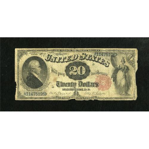 <B>Fr. 142 $20 1880 Legal Tender Good-Very Good.</B></I> Soft edges along with a couple margin tears and some pinholes are noticed on this early Legal with a touch over 100 notes known.<BR><BR><b>Shipping:</b> Coins & Currency (<a target="_blank" href="http://www.heritageauctions.com/common/shipping.php">view shipping information</a>)