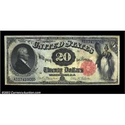 Fr. 142 $20 1880 Legal Tender Very Fine. This well-margined note is net-graded due to some paper aging and a few margin splits. From a circulation perspective the note is fully Extremely Fine. Important notice: We expect to be auctioning lots at the rate of 200-250 per hour. Sometimes eBay Premier live bid software cannot keep up with that pace, so we strongly recommend that you place a realistic proxy bid now as insurance to avoid disappointment. Also please note that all Heritage/CAA lots purchased through eBay Premier carry a 20% Buyer's Premium. Please make sure you read the Terms and Conditions.