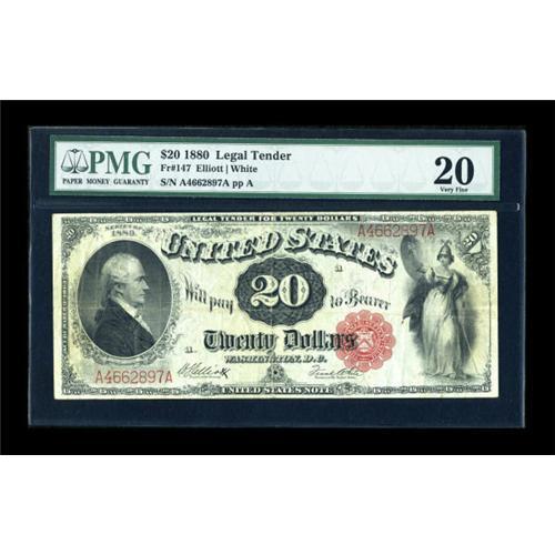 <B>Fr. 147 $20 1880 Legal Tender PMG Very Fine 20.</B></I> The most common of the 1880 $20 Legals, and a perfect example of the VF 20 grade. Good color and margins.<BR><BR><b>Shipping:</b> Coins & Currency (<a target="_blank" href="http://www.heritageauctions.com/common/shipping.php">view shipping information</a>)