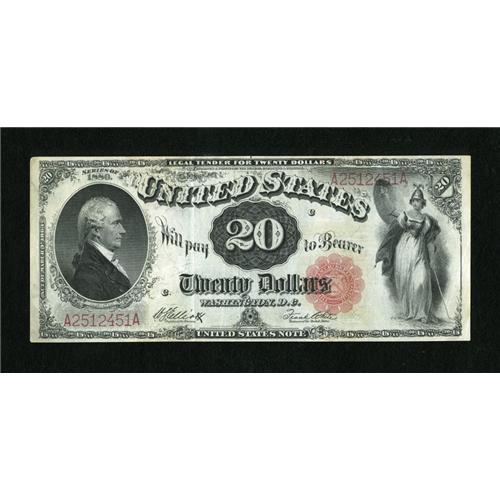 <B>Fr. 147 $20 1880 Legal Tender Very Fine.</B></I> A well margined and moderately circulated example of this higher denomination legal tender note. It exhibits some discoloration on the back<BR><I>From The Collection of Greg Southward</B></I><BR><BR><b>Shipping:</b> Coins & Currency (<a target="_blank" href="http://www.heritageauctions.com/common/shipping.php">view shipping information</a>)