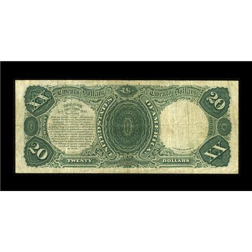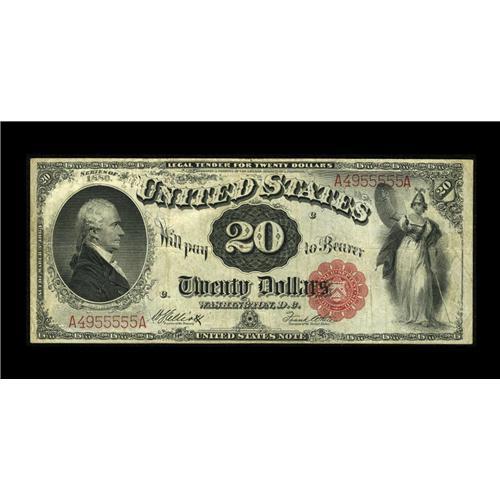 <B>Fr. 147 $20 1880 Legal Tender Very Fine.</B></I> Despite its time as a tool in day to day trade, this lightly circulated issue escaped without problems. The colors remain bright and the serial number includes five fives.<BR><I>From The Plymouth Rock Collection</B></I>