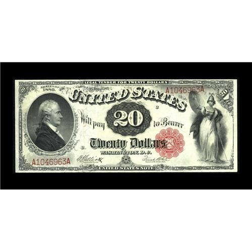 <B>Fr. 147 $20 1880 Legal Tender Very Fine-Extremely Fine.</B></I> Huge margins are seen on this beautiful, unmolested example that is very colorful with plenty of crispness remaining.<BR><BR><b>Shipping:</b> Coin/Currency (<a target="_blank" href="http://www.heritageauctions.com/common/shipping.php">view shipping information</a>)