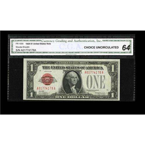 Fr. 1500 $1 1928 Legal Tender Note. CGA Choice Uncircul Fr. 1500 $1 1928 Legal Tender Note. CGA Choi