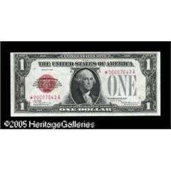<B>Fr. 1500* $1 1928 Legal Tender Note. Choice Crisp Uncirculated.</B></I><BR>A beautiful example of one of the great star note rarities, with this piece fully gem in all respects but for a slightly close top margin. We note previous auction records for 1928 $1 Legal stars not nearly this nice in the $35,000 plus range, and believe that this crackling fresh beauty could easily reach or exceed that number. Lot:15586