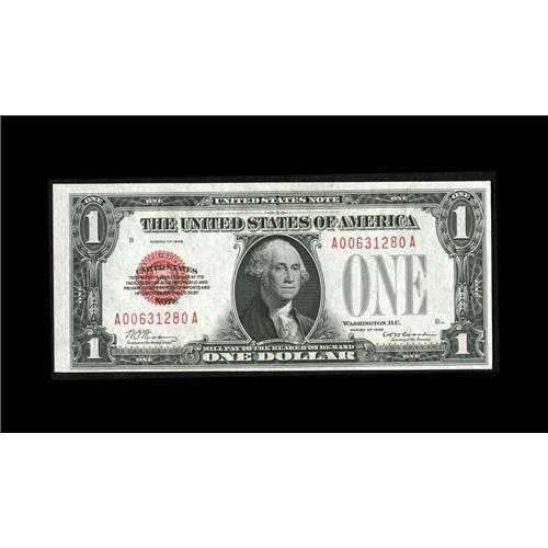 <B>Fr. 1500 $1 1928 Legal Tender Note. Choice Crisp Uncirculated.</B></I><BR>Embossing and natural paper wave are seen on this delightful Ace that struts its white paper and dark red overprint.