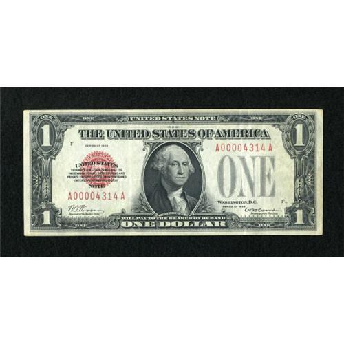 <B>Fr. 1500 $1 1928 Legal Tender Note. Extremely Fine.</B></I><BR> Embossing and natural paper surfaces highlight this lightly circulated Legal Ace that possesses bright white paper and a dark red overprint. There is a trace of an old paper clip stain above the portrait.<BR><BR><b>Shipping:</b> Coins & Currency (<a target="_blank" href="http://www.heritageauctions.com/common/shipping.php">view shipping information</a>)