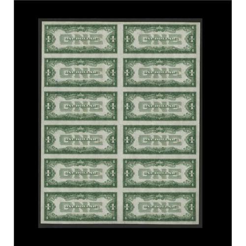 <B>Fr. 1500 $1 1928 Legal Tender. Uncut Sheet of 12. Choice Crisp Uncirculated.</B></I><BR>This immensely popular sheet was previously sold in our January 2002 FUN Sale, "This sheet is one of the keys to obtaining a complete set of uncut sheets, as only eight examples in all grades have been recorded to date. This sheet, the second printed, bears the lowest number of any of the known examples. It is a most attractive item, brightly colored and fully gem but for a couple of small pinch folds in the center of the sheet." The previous catalog description reference to the lowest numbers known on the eight sheets will stand forever as the first sheet, serial numbers 1-12, was cut and parceled out to collectors. The increased popularity of small size type notes is likely to be the fuel needed for this sheet to exceed our expectations. <BR><I>From the Scottsdale Collection</B></I>