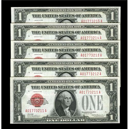 <B>Fr. 1500 $1 Legal Tender Notes. Choice-Gem Crisp Uncirculated.</B></I><BR>A run of five consecutive examples, the first three Choice due to centering, the last two well centered Gems.