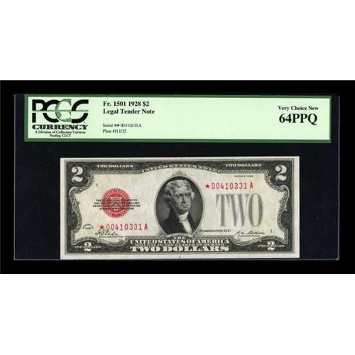 <B>Fr. 1501 $2 1928* Legal Tender Note. PCGS Very Choice New 64PPQ.</B></I><BR> This is a beautifully bright and fully embossed example of this rare star. We said this the first time when we sold this note and it still holds true today.<BR><I>From The Drew Keough Collection</B></I><BR><BR><b>Shipping:</b> Coins & Currency (<a target="_blank" href="http://www.heritageauctions.com/common/shipping.php">view shipping information</a>)