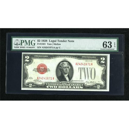<B>Fr. 1501 $2 1928 Legal Tender Note. PMG Choice Uncirculated 63 EPQ.</B></I><BR> This Deuce is consecutive to the previous two lots and with the same grade, too.<BR><BR><b>Shipping:</b> Coins & Currency (<a target="_blank" href="http://www.heritageauctions.com/common/shipping.php">view shipping information</a>)