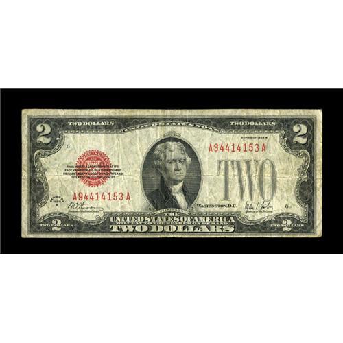 <B>Fr. 1503 $2 1928B Legal Tender. Fine-Very Fine.</B></I> This example of the key to the Small Size $2 notes has something we have never previously seen or heard of on any $2 1928B Legal...an Inverted Reverse. Even the massive Taylor Collection, which had a huge number of inverts, lacked a 1928B $2 legal invert. Any estimate here is just a total guess, but if rarity and desirability are any guide, expect the hammer to fall in the range of...<BR><BR><b>Shipping:</b> Coins & Currency (<a target="_blank" href="http://www.heritageauctions.com/common/shipping.php">view shipping information</a>)