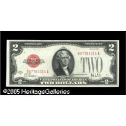 <B>Fr. 1503 $2 1928B Legal Tender Note. Crisp Uncirculated.</B></I><BR>This B-A block example has a tight top margin and the surfaces lack originality. Lot:15591