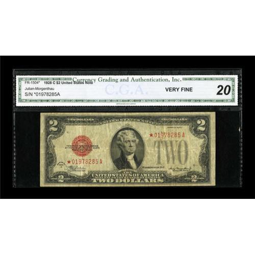 <B>Fr. 1504* $2 1928C Legal Tender Note. CGA Very Fine 20.</B></I><BR> Always a necessary addition to complete this series.<BR><BR><b>Shipping:</b> Coins & Currency (<a target="_blank" href="http://www.heritageauctions.com/common/shipping.php">view shipping information</a>)