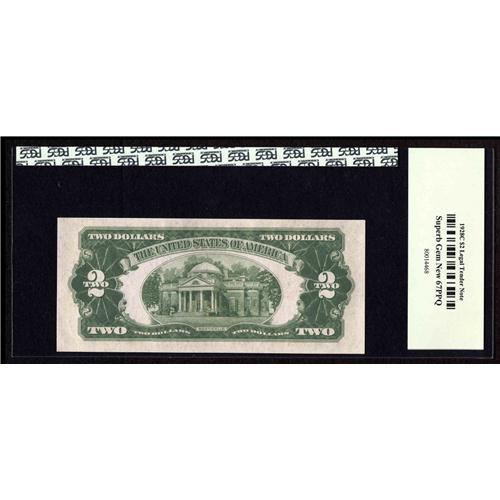 <B>Fr. 1504 $2 1928C Legal Tender Note. PCGS Superb Gem New 67PPQ.</B></I><BR>A superb example with jumbo margins, cracker jack embossing and fire engine red ink. The most anal retentive perfectionist will be pleased with this superlative quality.