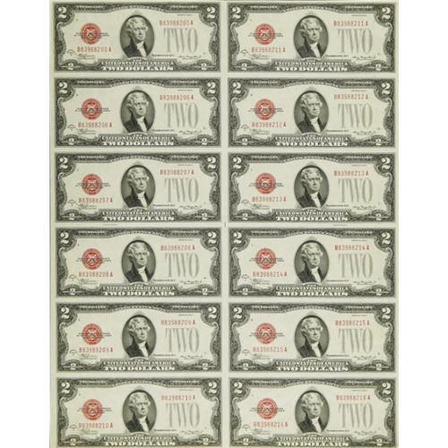 <B>Fr. 1504 $2 1928C Legal Tender Notes. Uncut Sheet of 12. Gem Crisp Uncirculated.</B></I><BR> This is a beautiful and well preserved sheet.<BR><BR><b>Shipping:</b> Coins & Currency (<a target="_blank" href="http://www.heritageauctions.com/common/shipping.php">view shipping information</a>)