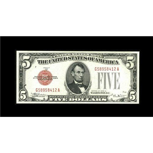 <B>Fr. 1529 $5 1928D Legal Tender Note. Gem Crisp Uncirculated.</B></I><BR>A beautifully centered example of the key to the $5 Red Seal series.