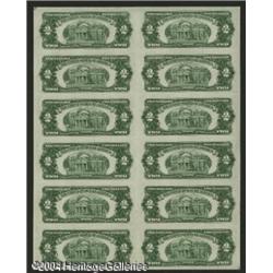 Fr. 1507 $2 1928F Legal Tender Notes. Uncut Sheet of <B>Fr. 1507 $2 1928F Legal Tender Notes. Uncut Sheet of 12. Choice Crisp Uncirculated.</B></I><BR>Pristinely fresh and bright paper enhance this beautiful sheet that we'd have classified as a Gem but for the presence of several very small paper adhesions on the back from old mounting in an album. We suspect that they are easily removable by a skilled paper conservationist. 100 of this particular denomination and series were released as uncut sheets. Given its overall superior brightness and eye appeal we believe this nice item will reach at least... <BR><BR><B>Important notice:</B> Heritage usually auctions material at the rate of 200-250 lots per hour. On some occasions eBay Live bid software or the Internet may not be able to keep up with the pace of the auction. We recommend placing a realistic absentee bid now as insurance to avoid disappointment. Occasionally the auctioneer may eliminate or reject an eBay Live bid, and the auctioneer may also reopen a lot after the close of the eBay live bidding (usually because we missed an audience bid), and may reject your bid even if it shows you as the winning bidder. By bidding via eBay Live, you agree that Heritage may award the lot to another bidder at its sole discretion under the circumstances described above or any other reasonable circumstances. Since eBay bids are not shown to us until we open the lot on the floor, we treat those bids just like floor bids. In most cases the floor responds before the eBay bid is presented to us, due to Internet lag time, so for consistency we have made it a policy that floor bids are always considered first over tie eBay live bids. Also please note that all Heritage lots purchased through eBay Live carry a 20% Buyer's Premium. Please make sure you read the Terms and Conditions before you bid. This lot is being auctioned in conjunction with a live floor auction by Heritage Galleries & Auctioneers. All final auction and invoice information will be supplied by Heritage Galleries & Auctioneers, and all other information should be considered preliminary. Lot:16156