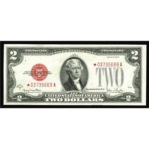 <B>Fr. 1508* $2 1928G Legal Tender Note. Choice About Uncirculated.</B></I><BR>This beauty would be a blazing Gem were it not for the lightest of corner bends.