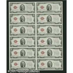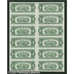 <B>Fr. 1508 $2 1928G Legal Tender Note. Uncut Sheet of 12. Gem Crisp Uncirculated.</B></I><BR>A bright sheet that could have been pulled from the printing press earlier today. The impressions of the seals and serial numbers are exceptionally deep and the combination of the bright paper and red seals and serials add to the overall visual impact of this lovely item.<BR><I>Acquired from Lyn Knight.</B></I> Lot:15603