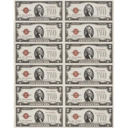 <B>Fr. 1508 $2 1928G Legal Tender Notes. Uncut Sheet of 12. Choice Crisp Uncirculated.</B></I><BR>This is an attractive sheet. The right edge has a tiny nick and the top right note has a counting crinkle.<BR><I>From The Jacob and Heather Dedman Collection</B></I><BR><BR><b>Shipping:</b> Coins & Currency (<a target="_blank" href="http://www.heritageauctions.com/common/shipping.php">view shipping information</a>)