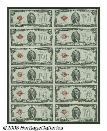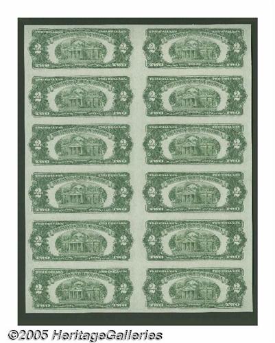 <B>Fr. 1508 $2 1928G Legal Tender Notes. Uncut Sheet of 12. Gem Crisp Uncirculated.</B></I><BR>This beautiful sheet has bold embossing, good color, and only a trivial amount of handling that affects only a note or two. Less than thirty uncut sheets from this series are reported in the census printed in the latest Oakes & Schwartz reference.