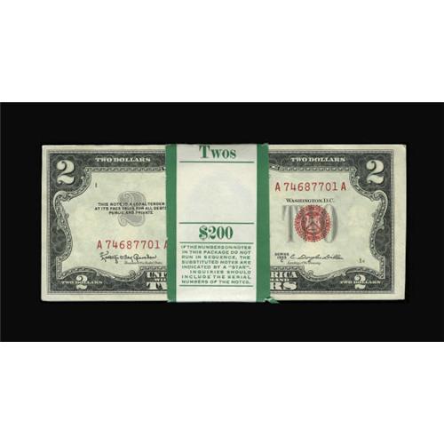 <B>Fr. 1512 $2 1953C Legal Tender Notes. Original Pack of 100. Choice Crisp Uncirculated.</B></I><BR> This is a nicely preserved pack with a couple of the outside notes showing some handling.<BR><I>From The Drew Keough Collection</B></I><BR><BR><b>Shipping:</b> Coins & Currency (<a target="_blank" href="http://www.heritageauctions.com/common/shipping.php">view shipping information</a>)