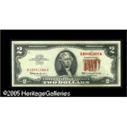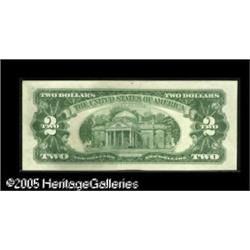 <B>Fr. 1513 $2 1963 Legal Tender Note. About New.</B></I><BR>A rather severe solvent smear affects the red seal and right hand serial number, but has barely impacted the black printing on this 1963 deuce. Lot:15338