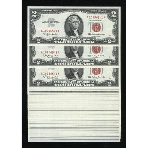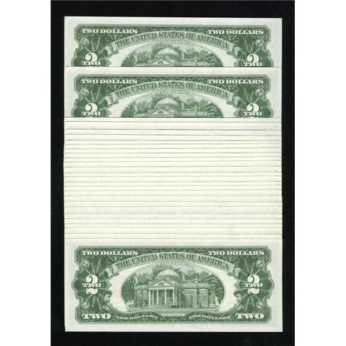 <B>Fr. 1513 $2 1963 Legal Tender Notes. 27 Consecutive Examples. Choice Crisp Uncirculated.</B></I><BR> Four wide margins are found on this grouping. The upper right corner shows a bump.<BR><BR><I>From The Drew Keough Collection</B></I><BR><BR><b>Shipping:</b> Coins & Currency (<a target="_blank" href="http://www.heritageauctions.com/common/shipping.php">view shipping information</a>)
