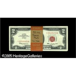 <B>Fr. 1513 $2 1963 Legal Tender Notes. Original Pack of 100. Crisp Uncirculated or Better.</B></I><BR>This pack starts off with a star note followed by 99 consecutive regular notes. The right-hand corner tips show edge bumps.<BR> 100 notes Lot:15606