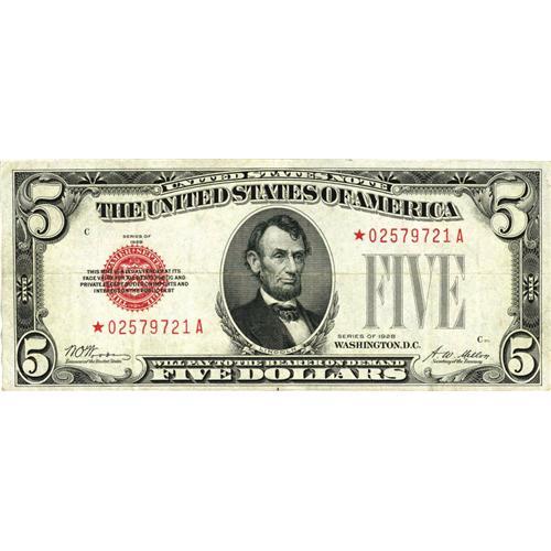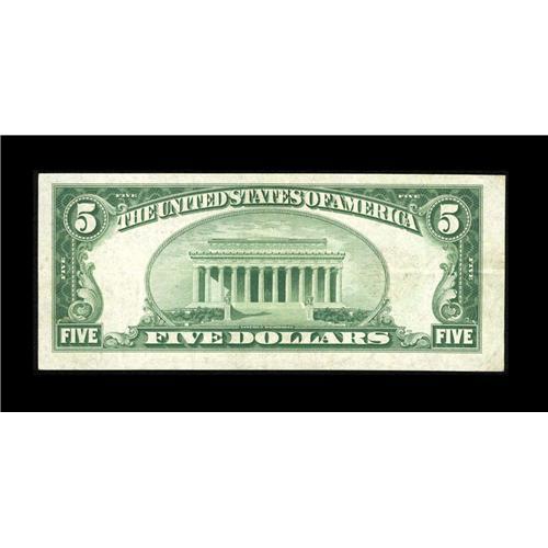 <B>Fr. 1525* $5 1928 Legal Tender Note. Very Fine.</B></I><BR>The overprint is still dark on this bright star.