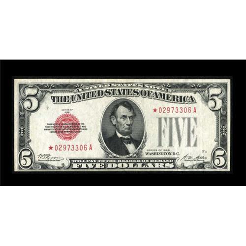 <B>Fr. 1525* $5 1928 Legal Tender Note. Very Fine.</B></I><BR> This is a most pleasing mid-grade example with wholly original paper and a bold overprint.<BR><I>From The Drew Keough Collection</B></I><BR><BR><b>Shipping:</b> Coins & Currency (<a target="_blank" href="http://www.heritageauctions.com/common/shipping.php">view shipping information</a>)