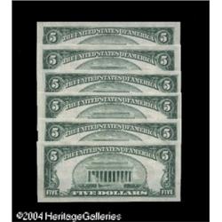 Fr. 1525 $5 1928 Legal Tender Notes. Gem Crisp Uncircul <B>Fr. 1525 $5 1928 Legal Tender Notes. Gem Crisp Uncirculated.</B></I><BR>A run of six consecutive examples, each pack fresh, perfectly original, and far better centered than most.<BR> 6 notes <BR><BR><B>Important notice:</B> Heritage usually auctions material at the rate of 200-250 lots per hour. On some occasions eBay Live bid software or the Internet may not be able to keep up with the pace of the auction. We recommend placing a realistic absentee bid now as insurance to avoid disappointment. Occasionally the auctioneer may eliminate or reject an eBay Live bid, and the auctioneer may also reopen a lot after the close of the eBay live bidding (usually because we missed an audience bid), and may reject your bid even if it shows you as the winning bidder. By bidding via eBay Live, you agree that Heritage may award the lot to another bidder at its sole discretion under the circumstances described above or any other reasonable circumstances. Since eBay bids are not shown to us until we open the lot on the floor, we treat those bids just like floor bids. In most cases the floor responds before the eBay bid is presented to us, due to Internet lag time, so for consistency we have made it a policy that floor bids are always considered first over tie eBay live bids. Also please note that all Heritage lots purchased through eBay Live carry a 20% Buyer's Premium. Please make sure you read the Terms and Conditions before you bid. This lot is being auctioned in conjunction with a live floor auction by Heritage Galleries & Auctioneers. All final auction and invoice information will be supplied by Heritage Galleries & Auctioneers, and all other information should be considered preliminary. Lot:16167