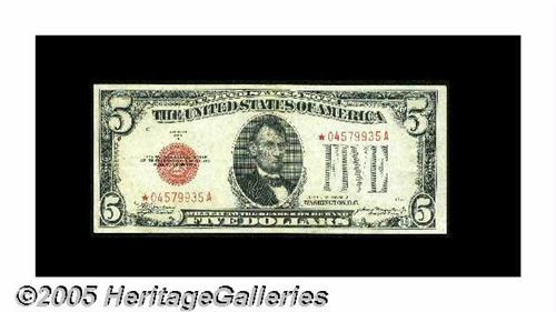 <B>Fr. 1527* $5 1928B Legal Tender Note. Extremely Fine.</B></I><BR>A nice circulated example of this elusive star retaining virtually full original paper body.
