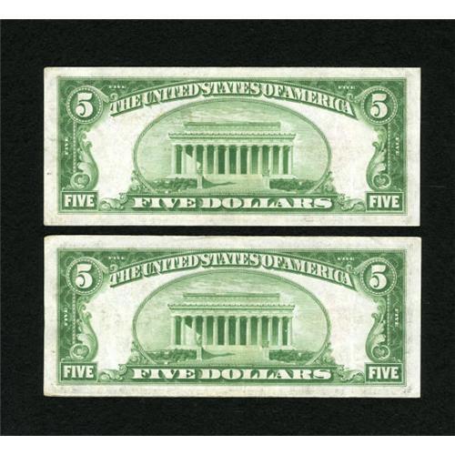 Fr. 1527* $5 1928B Legal Tender Star Notes. Two