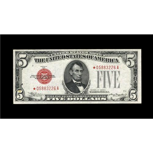 <B>Fr. 1528 $5 1928C Legal Tender Note. Extremely Fine-About Uncirculated.</B></I><BR>A lovely example of this Red Seal star which is not usually seen in the upper circulated grade range. Healthy margins and excellent embossing are clearly visible to even the untrained eye.<BR><BR><b>Shipping:</b> Coin/Currency (<a target="_blank" href="http://www.heritageauctions.com/common/shipping.php">view shipping information</a>)