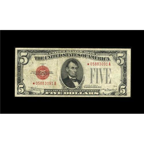 Fr. 1528* $5 1928C Legal Tender Star Note. Very Fine.A Fr. 1528* $5 1928C Legal Tender Star Note. Ve