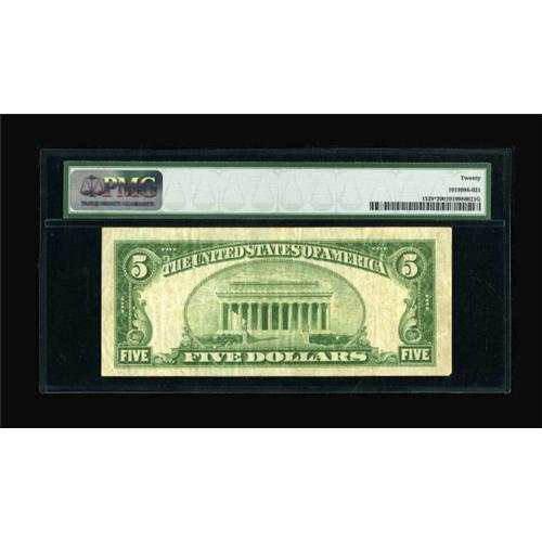 Fr. 1528* $5 1928C Mule Legal Tender Note. PMG