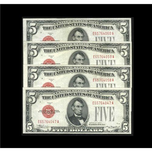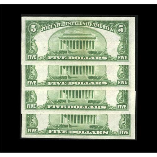 <B>Fr. 1528 $5 1928C Mule Legal Tender Notes. Choice-Gem Crisp Uncirculated.</B></I><BR>Four pieces, three of which are in consecutive order.