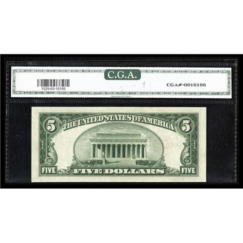 Fr. 1529 $5 1928D Legal Tender Note. CGA Gem Uncirculat Fr. 1529 $5 1928D Legal Tender Note. CGA Gem