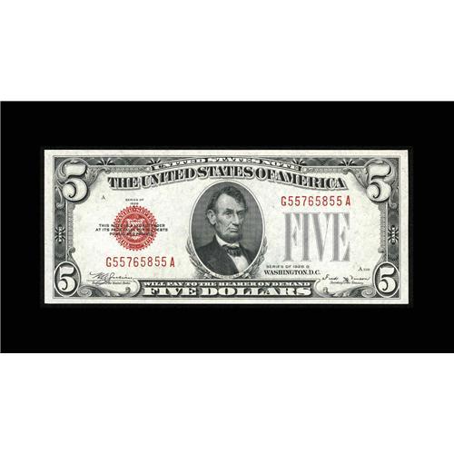 <B>Fr. 1529 $5 1928D Legal Tender Note. Gem Crisp Uncirculated.</B></I><BR>A beautifully centered and pack fresh example of this key note from the Midwest Collection of Small Size Type Notes.