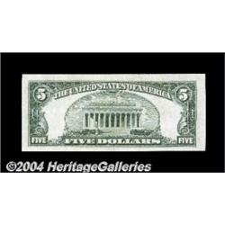 Fr. 1529 $5 1928D Legal Tender Note. Gem Crisp Uncirculated.Crackling fresh, fully embossed, and utterly original, a beautiful example of the key note to the $5 Legal series. <BR><BR><B>Important notice:</B> Heritage usually auctions material at the rate of 200-250 lots per hour. On some occasions eBay Live bid software or the Internet may not be able to keep up with the pace of the auction. We recommend placing a realistic absentee bid now as insurance to avoid disappointment. Occasionally the auctioneer may eliminate or reject an eBay Live bid, and the auctioneer may also reopen a lot after the close of the eBay live bidding (usually because we missed an audience bid), and may reject your bid even if it shows you as the winning bidder. By bidding via eBay Live, you agree that Heritage may award the lot to another bidder at its sole discretion under the circumstances described above or any other reasonable circumstances. Since eBay bids are not shown to us until we open the lot on the floor, we treat those bids just like floor bids. In most cases the floor responds before the eBay bid is presented to us, due to Internet lag time, so for consistency we have made it a policy that floor bids are always considered first over tie eBay live bids. Also please note that all Heritage lots purchased through eBay Live carry a 20% Buyer's Premium. Please make sure you read the Terms and Conditions before you bid. <BR><BR><B>IMPORTANT ANNOUNCEMENT ABOUT RESERVES:</B> Heritage now divulges all reserves on its web site 7 days before every auction. If you want to know whether the reserve on this lot has been met, and if not, what the reserve amount is, please visit this lot page on the HeritageCoin.com web site, or email: bid@HeritageGalleries.com